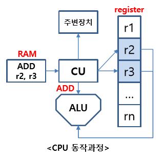 - 컴퓨터 명령어(기계어)를 해석하고 연산함