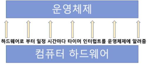 일정시간(아주 짧은시간)마다 하드웨어로부터 인터럽트를 운영체제에 알려주는 방식, 선점형 스케쥴러를 위해 필요(시분할)