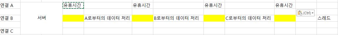 위처럼 하나의 스레드만 사용하더라도 다중 I/O 사용 작업을 동시에 실행할 수 있는 능력을 손상시키지 않는다. 즉, 시분할의 개념을 통해 분산된다. 이를 통해 스레드의 총 유휴시간을 최소화 하는 장점이 있다.